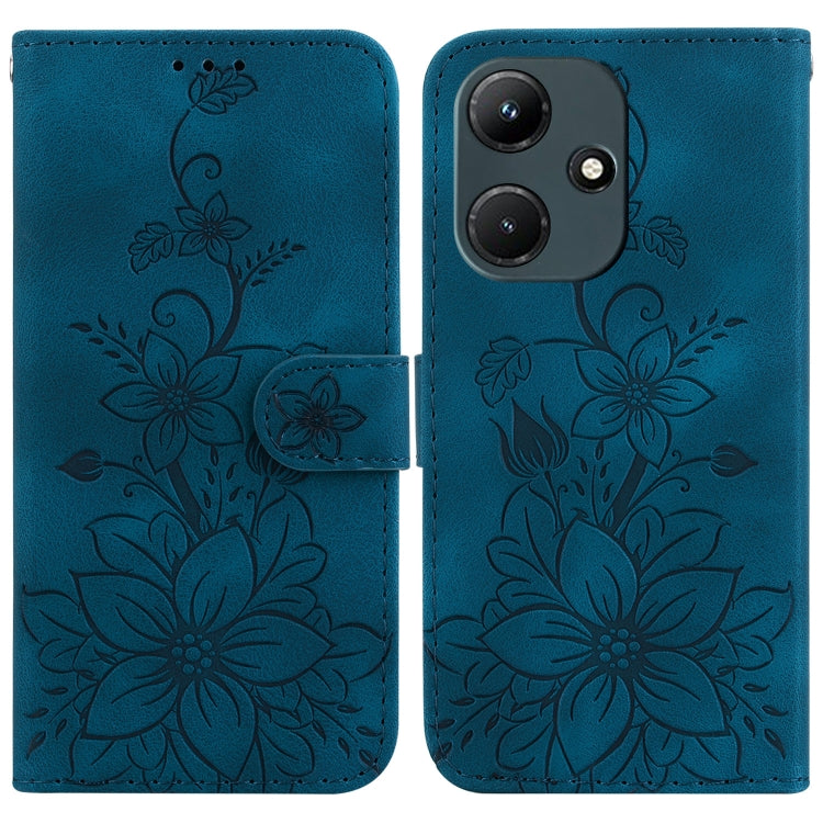 Estuche para Infinix Hot 30I / X669C de Cuero con Relieve de Lirio (Azul Oscuro)