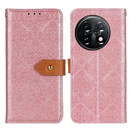 Estuche para OnePlus 11 5G de Cuero con Tapa en Relieve Floral Europeo (Rosa)