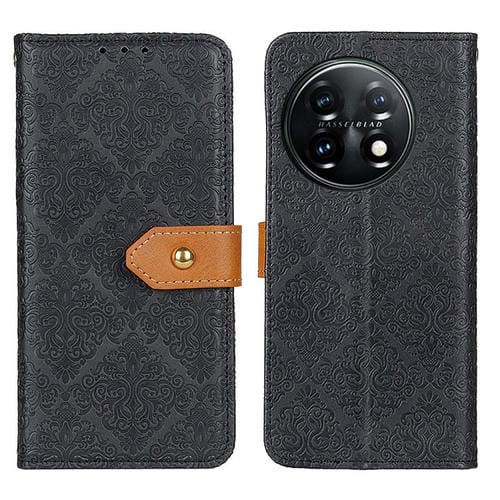 Estuche para OnePlus 11 5G de Cuero con Tapa en Relieve Floral Europeo (Negro)