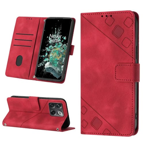 Estuche para OnePlus 10T 5G de Cuero en Relieve con Tacto de Piel (Rojo)