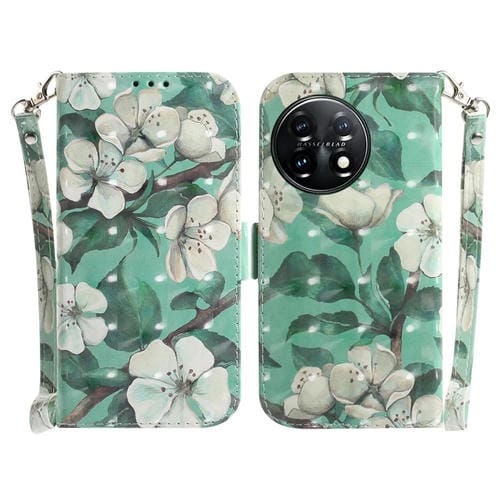 Estuche para OnePlus 11 de Cuero con Tapa Horizontal y Diseño 3D Flor de Acuarela