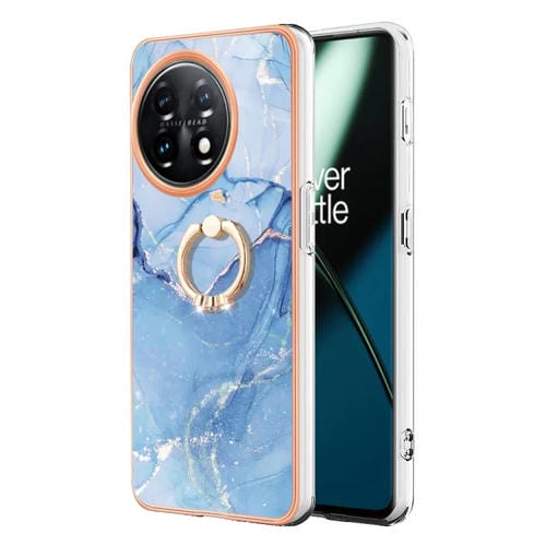Estuche para OnePlus 11 Imd Doble Cara Mármol Galvanizado con Anillo (Azul)