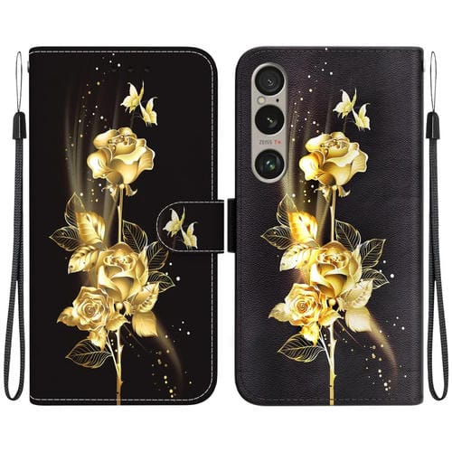 Estuche para Sony Xperia 10 III de Cuero Pintado en 3D Mariposa Golondrina Dorada
