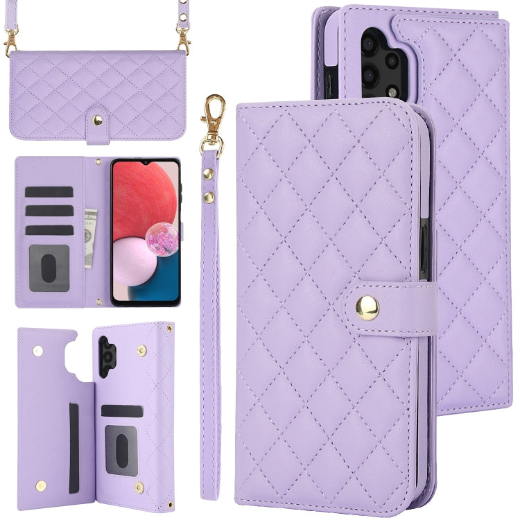Estuche cruzado de cuero para Samsung Galaxy A13 4G y 5G multifunción (Púrpura)