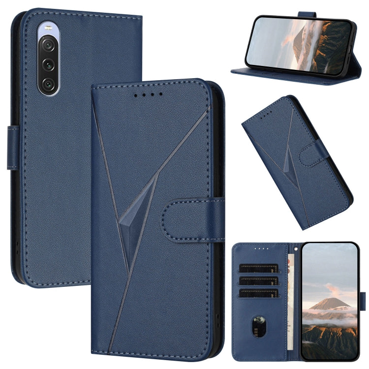 Estuche de Cuero con Hebilla y Diseño de Triángulos para Sony Xperia 10 V (Azul Real)