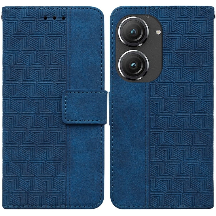 Estuche de Cuero para Asus Zenfone 9 con Tapa en Relieve Geométrico (Azul)