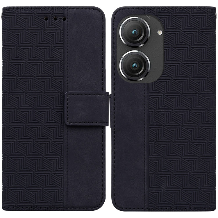 Estuche de Cuero para Asus Zenfone 9 con Tapa en Relieve Geométrico (Negro)
