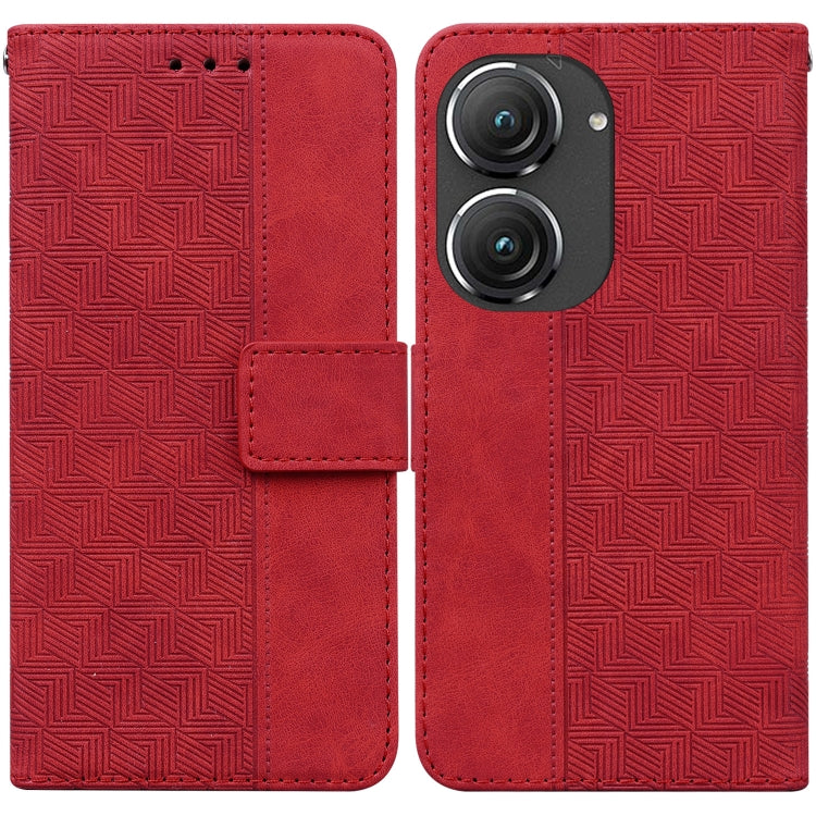 Estuche de Cuero para Asus Zenfone 9 con Tapa en Relieve Geométrico (Rojo)