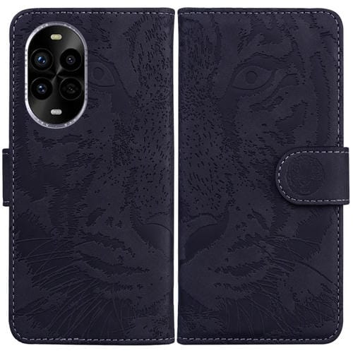 Funda de Cuero con Tapa y Estampado de Tigre para Huawei Nova 13 Pro (Negra)