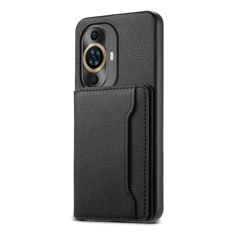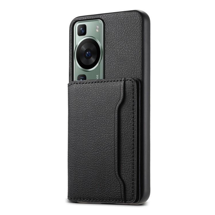 Funda para Huawei P60 con Diseño Bolsa de Tarjeta y Textura de Pantorrilla (Negro)