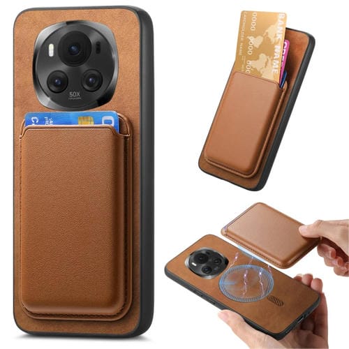Funda para Honor Magic6 Pro 5G Retro Magsafe Card Bag PU con Contraportada (MarrĂłn)