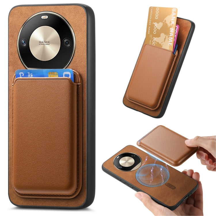 Funda para Honor Magic6 5G Retro Magsafe Card Bag PU con Contraportada (MarrĂłn)