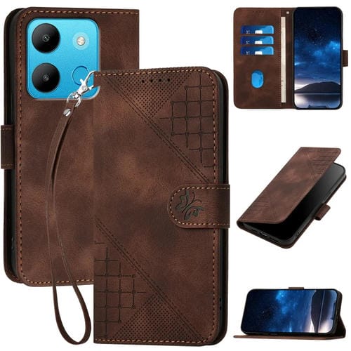 Funda de Cuero con Tapa y Cordón para Infinix Hot 30 Yx0080 Diseño Mariposas (Café)