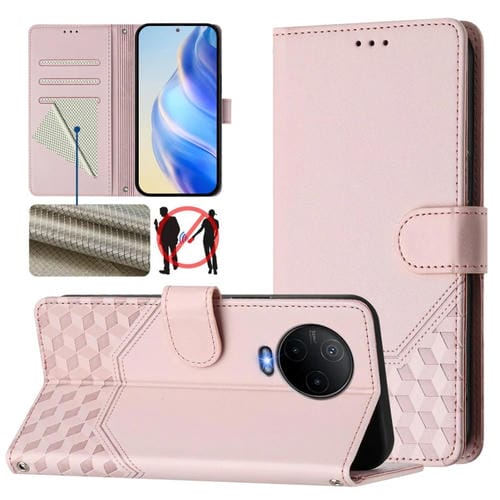 Funda de Cuero RFID con Relieve en Panal para Infinix Zero 30 4G (Rosa)