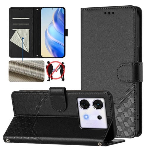 Funda de Cuero Rfid con Relieve en Panal para Teléfono Infinix GT 20 Pro 5G (Negra)