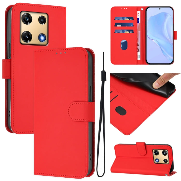 Funda de Cuero con Cordón para Infinix Note 30 4G/5G con Tacto de Piel (Rojo)