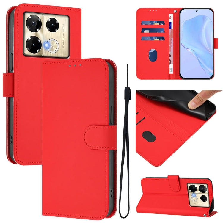 Funda de Cuero con Cordón para Infinix Note 40 5G con Tacto de Piel (Rojo)