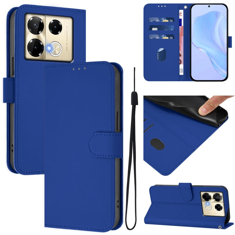 Funda de Cuero con Cordón para Infinix Note 40 Pro 4G con Tacto de Piel (Azul Oscuro)