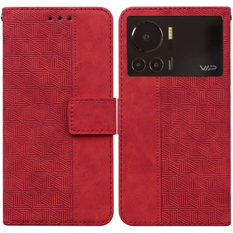 Estuche de Cuero para Infinix Note 12 Vip con Relieve Geométrico (Rojo)