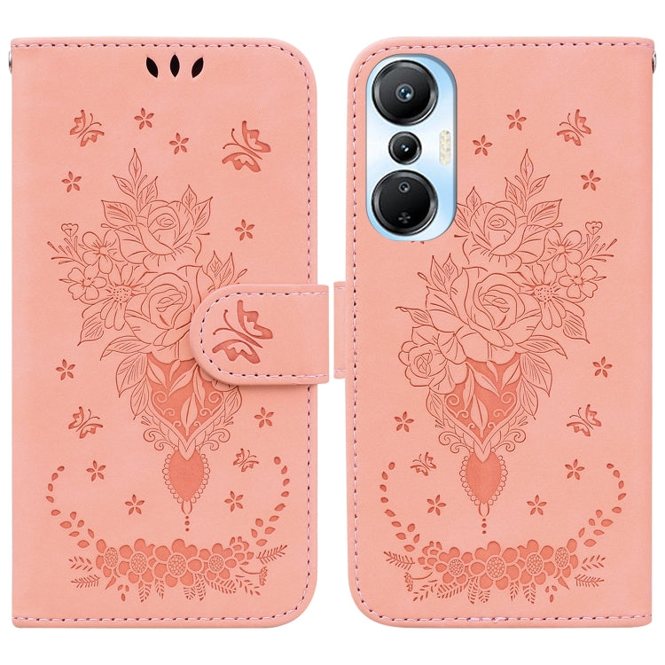 Estuche para Teléfono Infinix Hot 20 Butterfly Rose de Cuero en Relieve (Rosa)