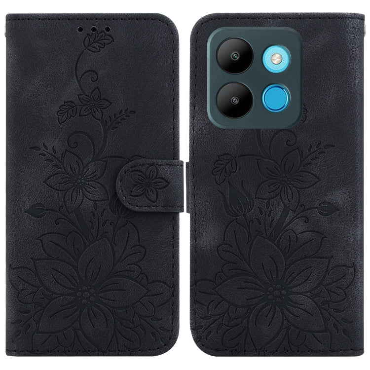 Estuche de Teléfono Infinix Hot 20 5G Lily de Cuero en Relieve (Negro)