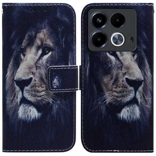 Funda de Cuero para Infinix Note 40 4G con Tapa y Dibujo Coloreado (León)