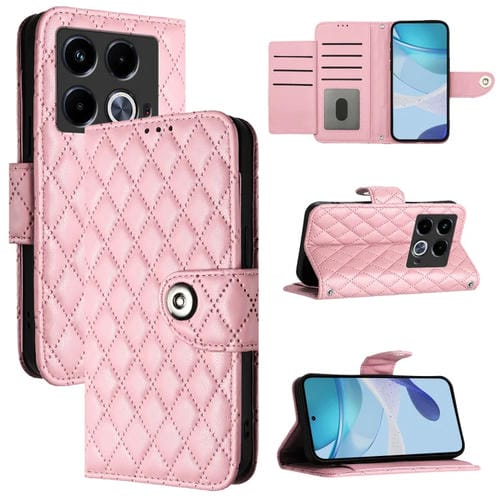 Funda de Cuero para Infinix Note 40 4G con Tapa, Textura Romboidal y Cordón (Rosa)