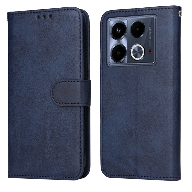 Funda de Piel con Tapa y Textura Clásica de Becerro para Infinix Note 40 4G (Azul)