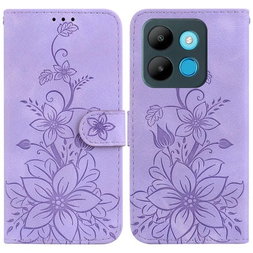 Funda para Infinix Smart 7 African / X6515 Lily de Cuero en Relieve (PĂșrpura)