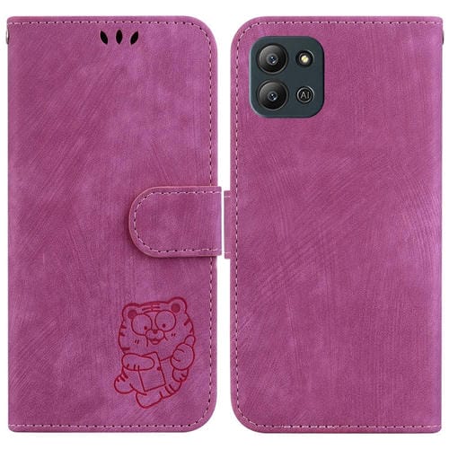 Funda de Cuero para Infinix Hot 12 Play Little Tiger en Relieve (Rojo Rosa)
