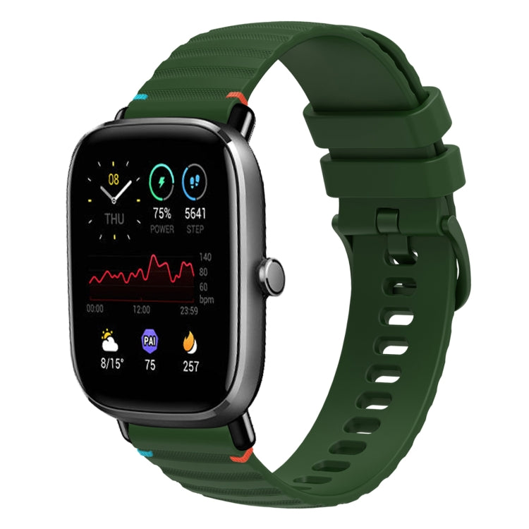 Correa de Silicona 20mm Amazfit Bip 3 Puntadas Onduladas Puntos (Verde Militar)