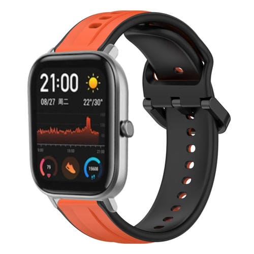 Correa de Reloj Amazfit Pop 20mm Convex Loop Silicona Dos Colores (Naranja + Negro)