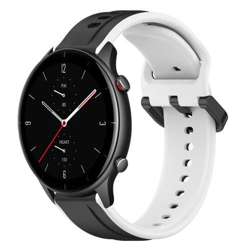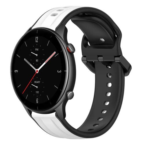 Correa de Silicona para Amazfit GTR 2E 22mm con Bucle Convexo (Negro + Blanco)