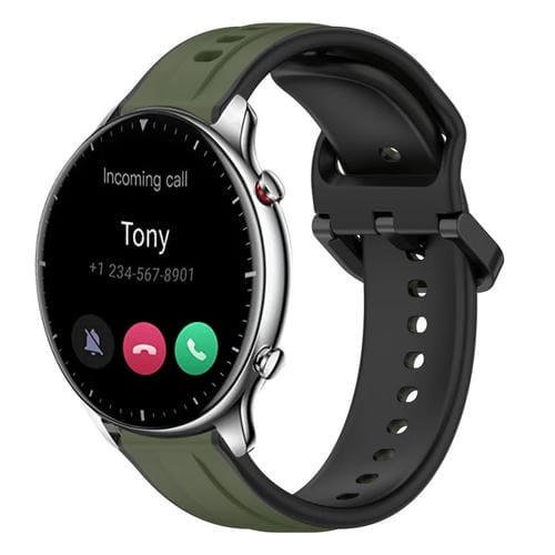Correa de Reloj Silicona para Amazfit GTR 2 22mm Bucle Convexo (Verde Oscuro + Negro)