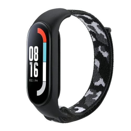 For Xiaomi Mi Band 5/6/7 Nylon Loop Integrated Camo Woven Strap (Black Camouflage)