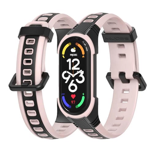 For Xiaomi Mi Band 5/6/7 MIJOBS Unibody Two-color Silicone Watch Strap (Black Pink)