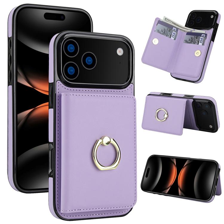 Funda antirrobo RFID para iPhone 17 Pro Max con anillo para tarjetas (morado)