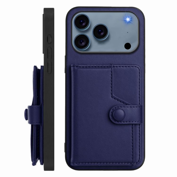 Funda antirrobo RFID con botón y tarjetero para iPhone 17 Pro (azul)