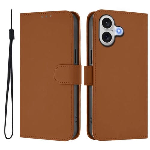 Funda de piel con tacto suave y color liso para iPhone 17 con cordón (marrón)