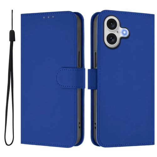 Funda de piel con tacto suave y color liso para iPhone 17 con cordón (azul oscuro)