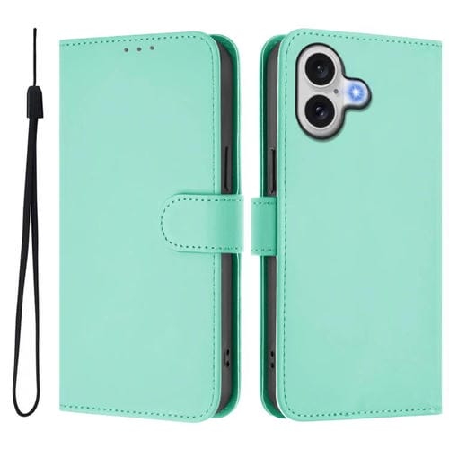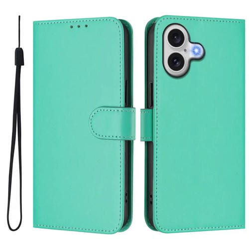 Funda de piel con tacto suave y color liso para iPhone 17 con cordón (verde menta)