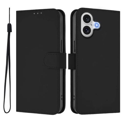 Funda de piel con tacto suave y color liso para iPhone 17 con cordón (negro)