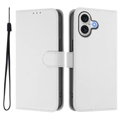 Funda de piel con tacto suave y color liso para iPhone 17 con cordón (blanca)