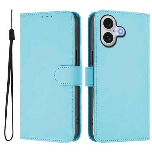 Funda de piel con tacto suave y color liso para iPhone 17 con cordón (azul cielo)