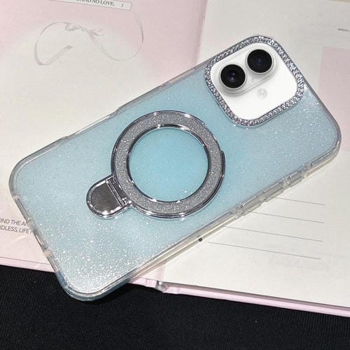 Funda MagSafe con diamantes y purpurina degradada para iPhone 17 (azul claro)