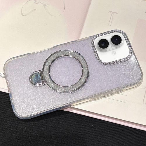Funda MagSafe con diamantes y purpurina degradada para iPhone 17 (morado claro)