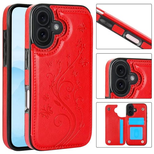 Funda de PU con doble hebilla y estampado de mariposa para iPhone 17 (roja)
