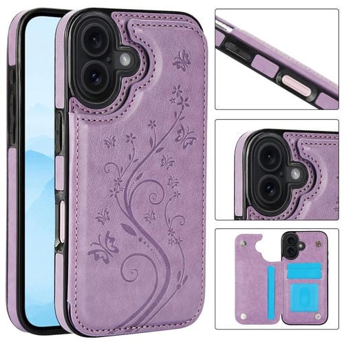 Funda de PU con doble hebilla y estampado de mariposa para iPhone 17 (morada)