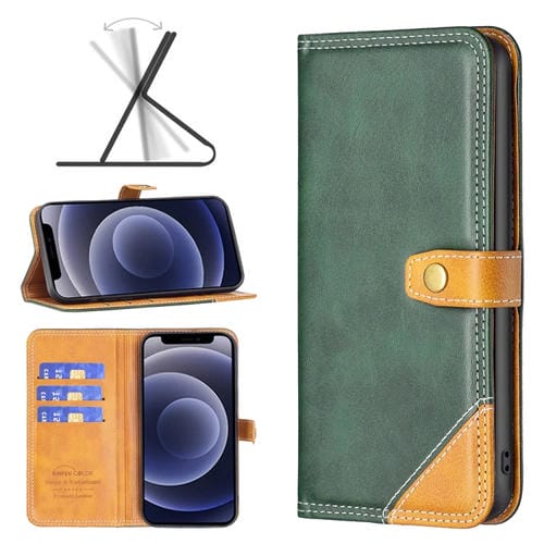 Estuche de Cuero para iPhone 12 Mini con Hilo de Coser Doble a Juego de Colores (Verde)