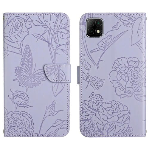 Funda de Cuero En Relieve para Wiko Power U30 Siente la Piel de la Mariposa (Púrpura)
